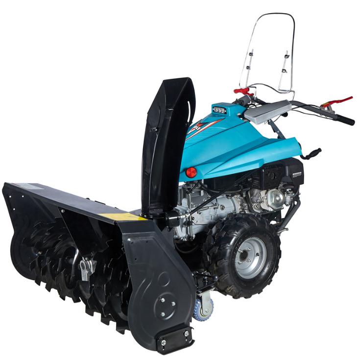 拋雪機工作原理:發(fā)動機在拋雪機工作時為其提供動力,動力通過齒輪傳輸?shù)綊佈┭b置和行走系統(tǒng)。積雪通過收集裝置收集到空腔中,拋雪葉輪高速旋轉時,借助離心力拋雪。從而達到除雪拋雪的目的。手推式拋雪機每小時可以除雪4000平方米,省時省力省人工。